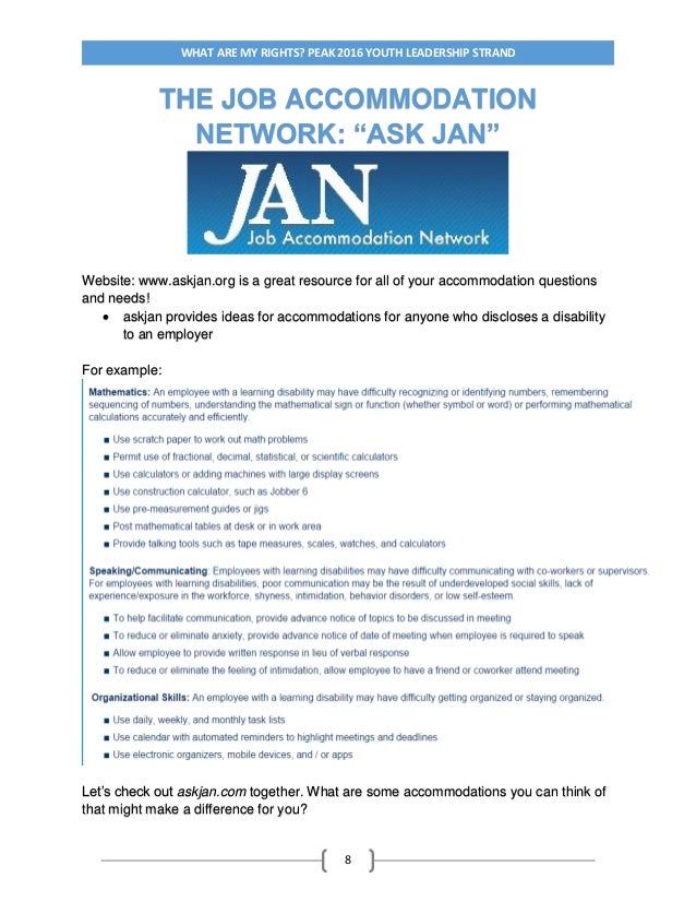The job accommodation network jan is the leading source of free expert and confidential guidance on workplace accommodations and disability employment issues. Reasonable accommodations for anxiety can include remote work a support animal a rest area a modified break schedule a. Provide human assistance provide job coach mentor.